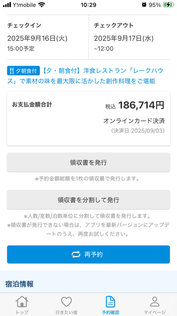 今回の宿泊料金 1泊2名 夕朝食付き リバーサイドビュー2ダブルのお部屋