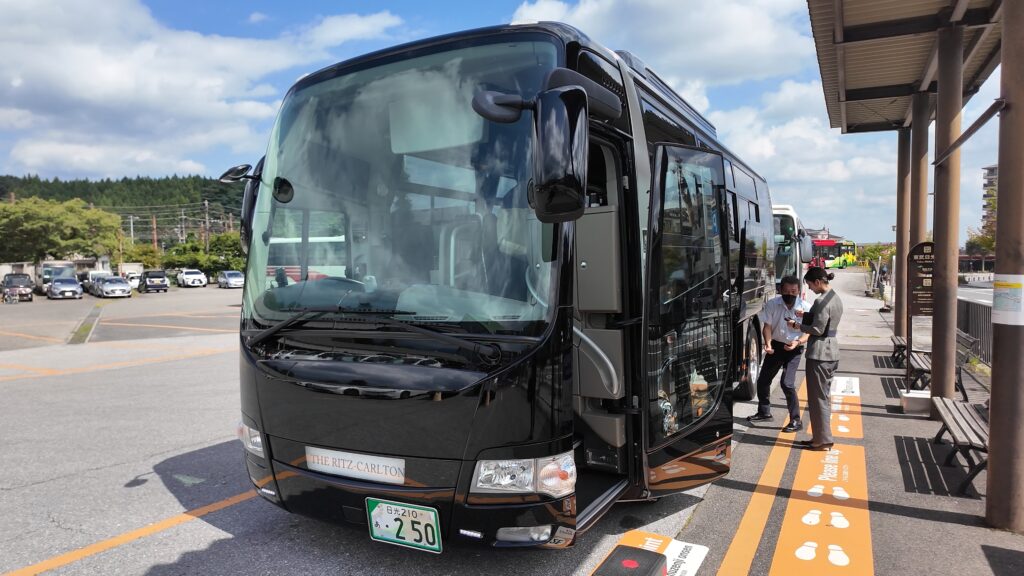 マリオット会員であれば予約で日光駅からホテルまで無料送迎バスが発着しています。公共機関のバスを利用すると1人あたり2千円強かかるのでお得です。