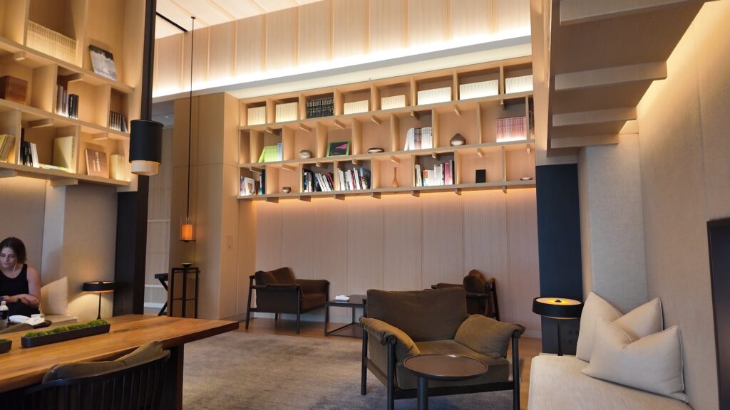 チェックインはフロントロビーの先にあるライブラリーエリアで行います。場合によってはお隣にあるBARエリアでチェックインをすることもあります。