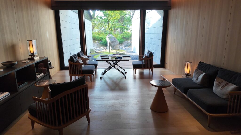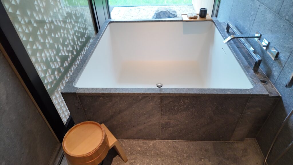 リッツカールトン日光はリッツカールトンで唯一、温泉施設があります。硫黄の香りが心地良いお湯です。湯上がり後は湯上がりラウンジで寛げます。