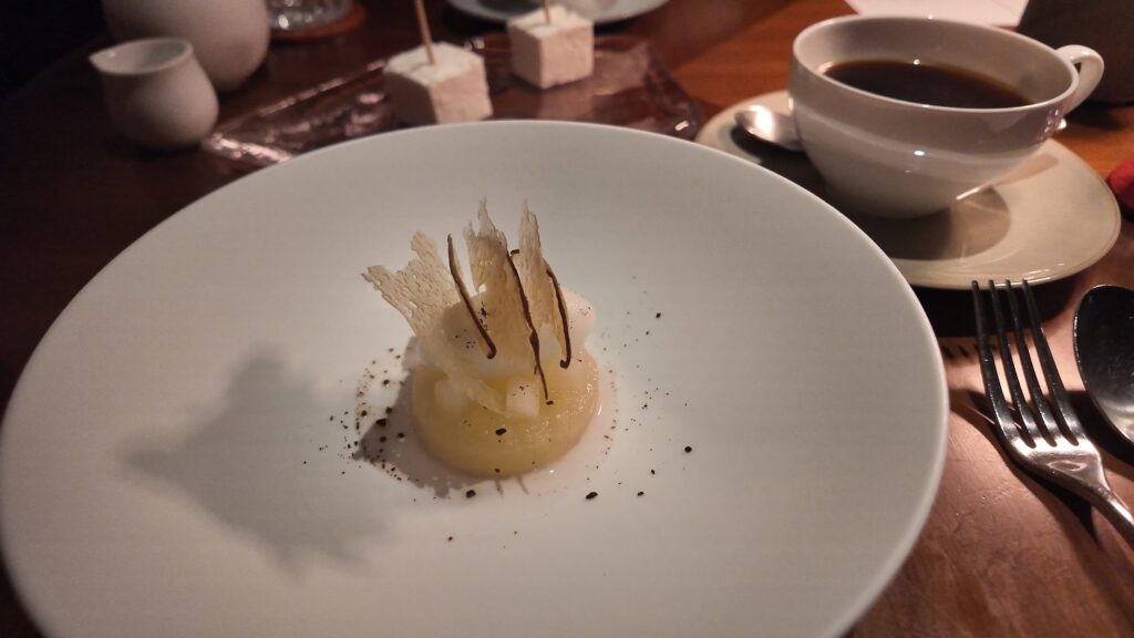 アミューズは「頂鱒 舟石芋 塩レモン」