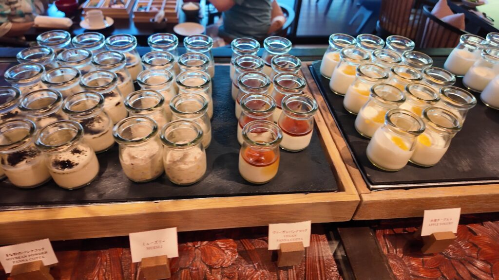 洋朝食か和朝食を選んでハーフビュッフェ形式で美味しいプリンやヨーグルトがありますか