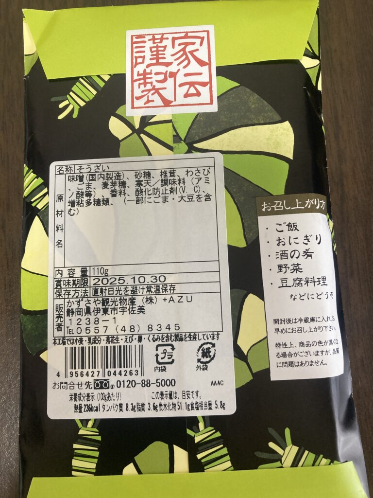 かずさや 「わさび味噌」110g ¥432(税込)