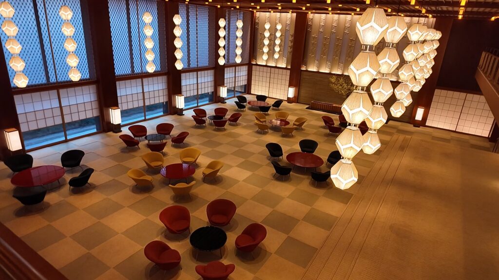 ロビーフロアに入ると目につくのはオークラ東京のシンボルの照明「オークラランターン」です。