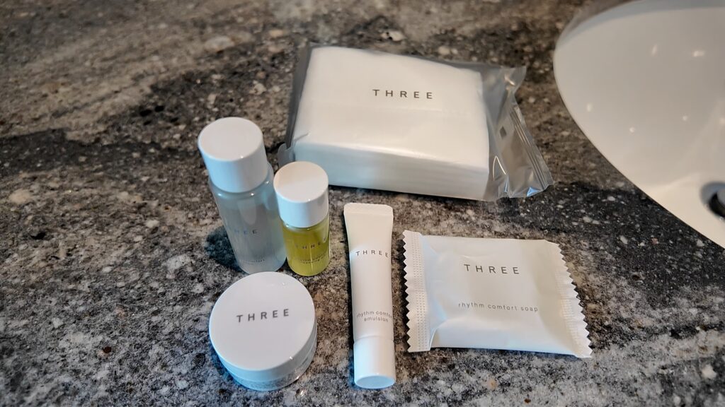 スキンケアキットは「THREE」です。