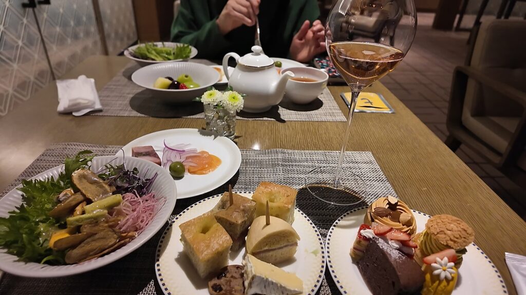 カクテルタイムはアルコールが登場して「モエシャンドンロゼ」をはじめオークラオリジナルワインやリキュールなど充実したラインナップです。オードブルはお酒のアテになるものはありますが少なめです。