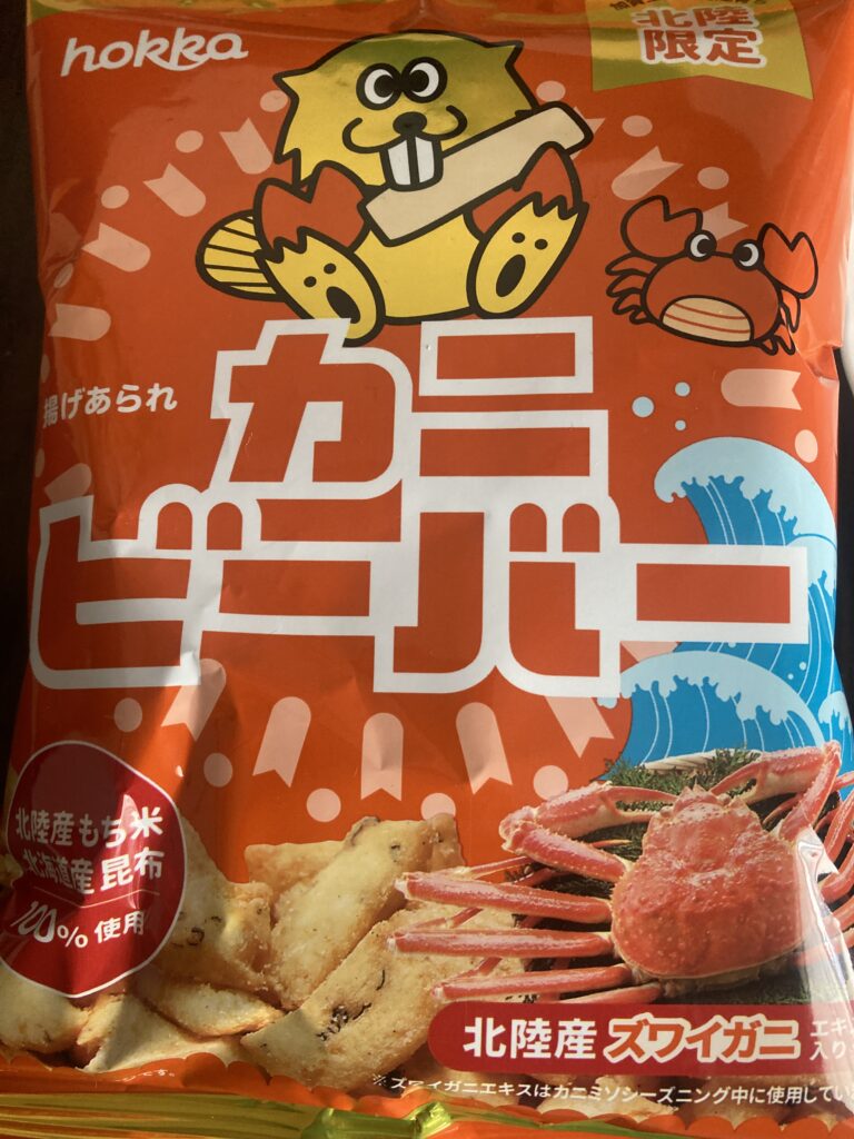 北陸製菓の看板商品「ビーバー」の新味「カニ味」です。