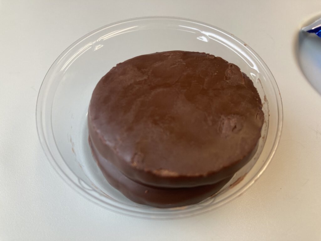 厚みと大きさが通常のチョコまみれよりも大きいです。チョコクリームが入っていてチョコチップのアクセントがいい感じで濃厚な一品です。贅沢なスイーツを食べた感じになります。