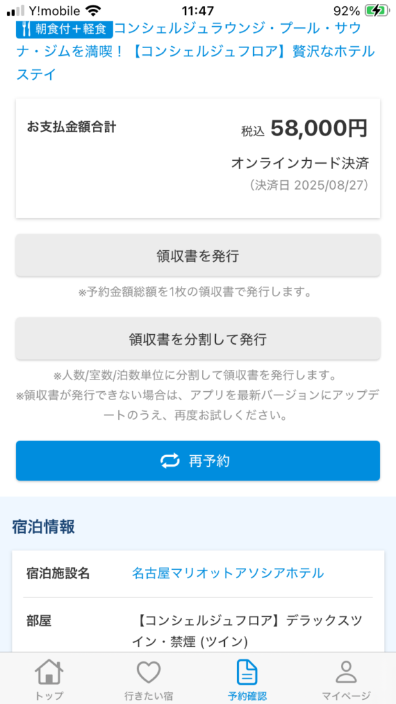 今回の宿泊料金 1泊朝食付き コンシェルジュフロア デラックスツインのお部屋 2名