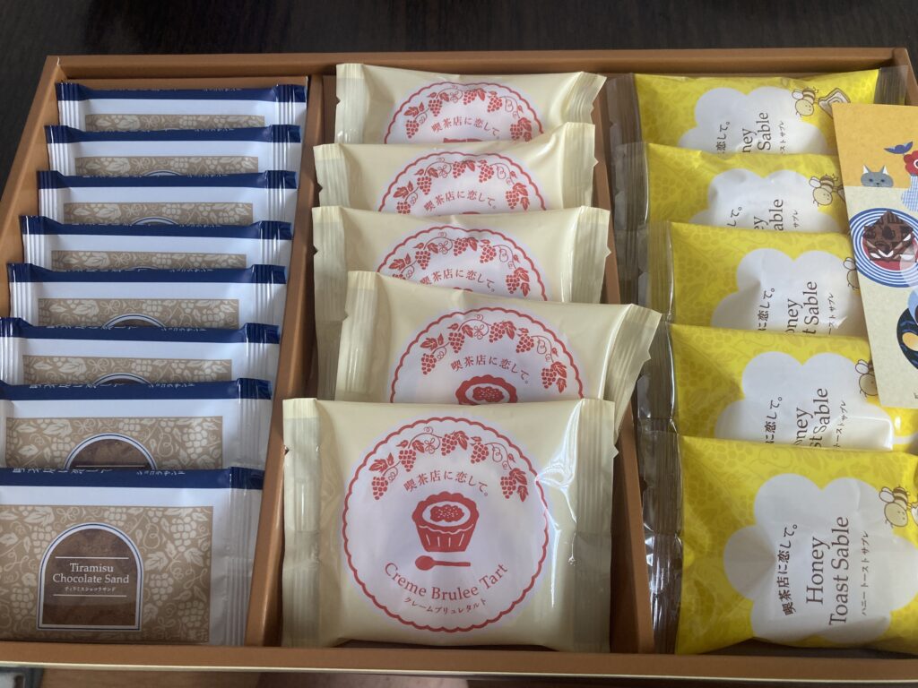 「ティラミスショコラサンド」「クリームブリュレタルト」「ハニートーストサブレ」の3種類の詰め合わせです。