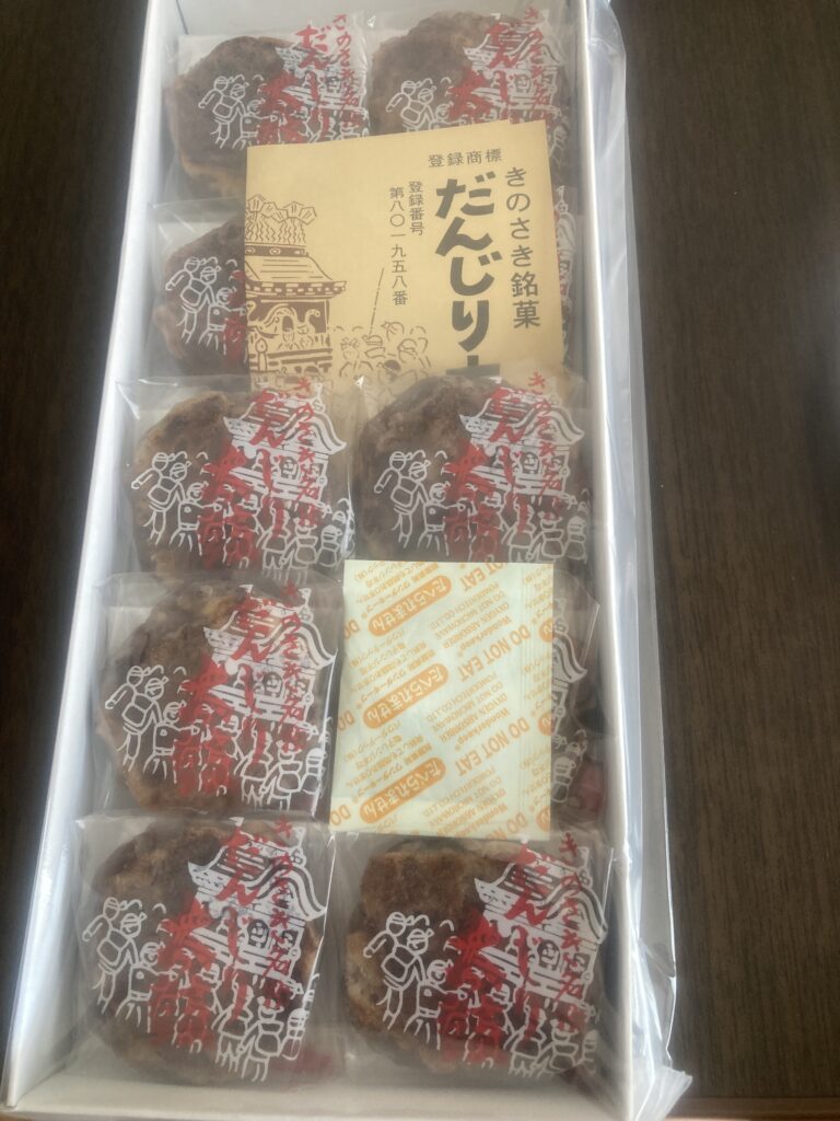 城崎温泉 西村屋本館に宿泊した際にウエルカムお菓子で提供された「だんじり太鼓」が美味しすぎてお土産で購入しました。