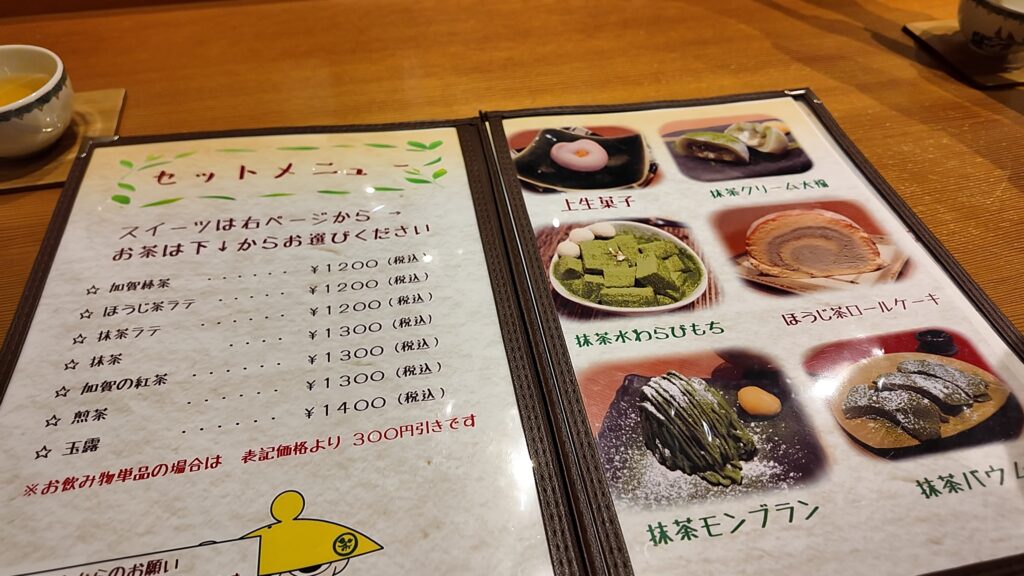 加賀棒茶はしっかりと香ばしさを感じるほうじ茶で想像を超えた香りでお茶がとにかく絶品です。抹茶バウムは黒蜜といただきます。お茶とスイーツの相性が抜群で美味しいです。