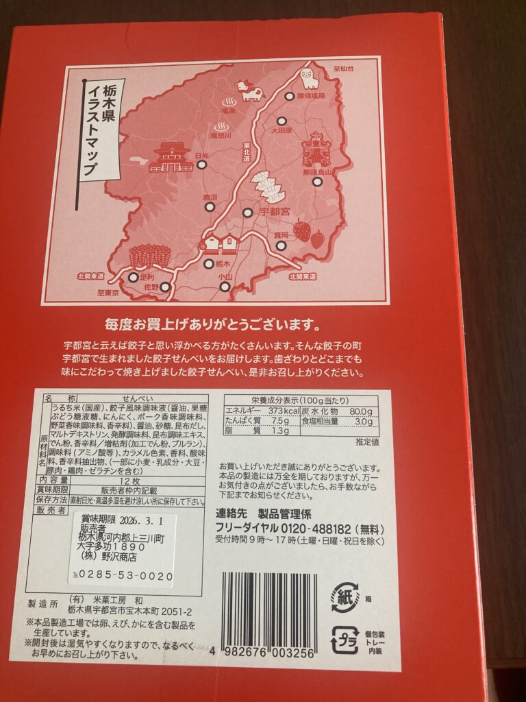 「宇都宮餃子せんべい」(株)野沢商店 1箱¥756(税込)