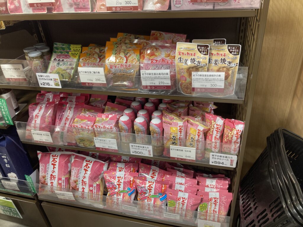 陳列には岩下の新生姜関連の商品が並んでいます。