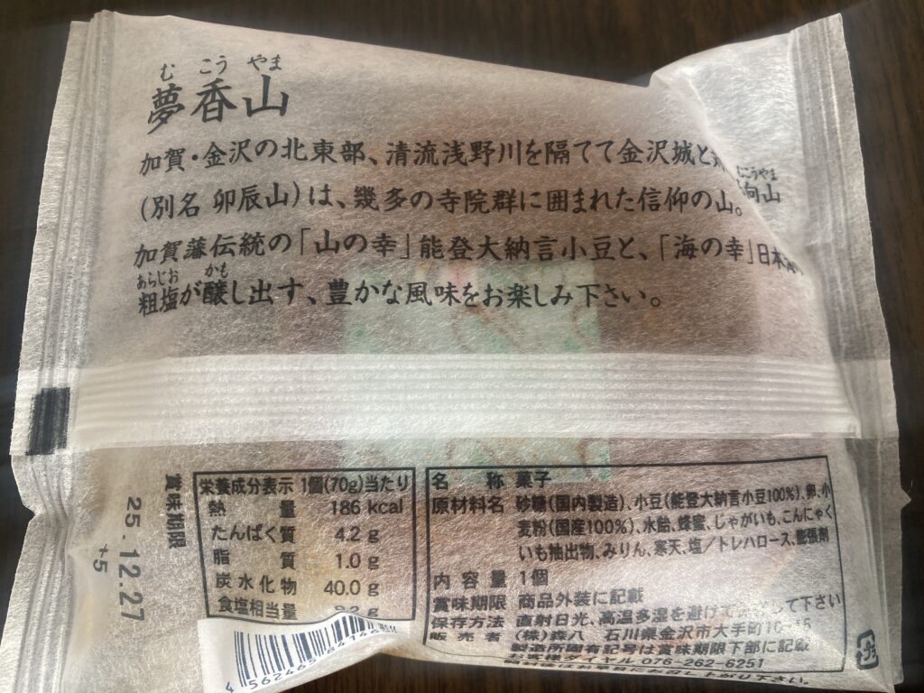 加賀藩御用菓子司 森八 夢香山 1個¥227(税込)