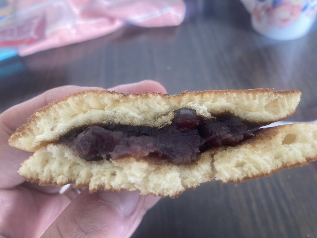 食べてみると餡子の量にびっくり。ぎっしり詰まっています。大きさも大きめで食べ応えあります。