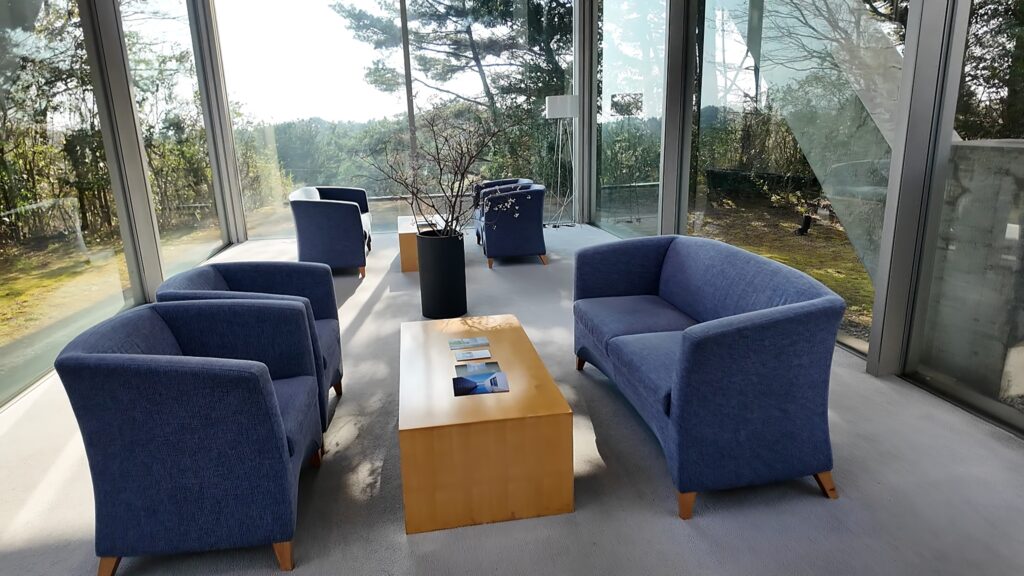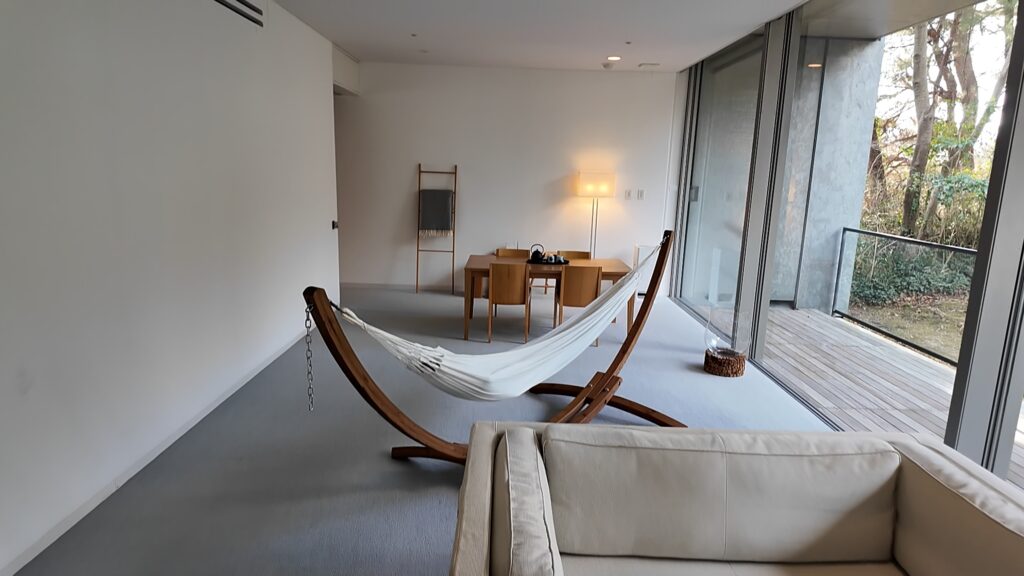 エントランスは石造りの重厚な感じです。かつて美術館だった施設を世界的建築家安藤忠雄氏監修でリノベーションして全7室オールスイートのスモールラグジュアリーホテルとしてオープンしました。