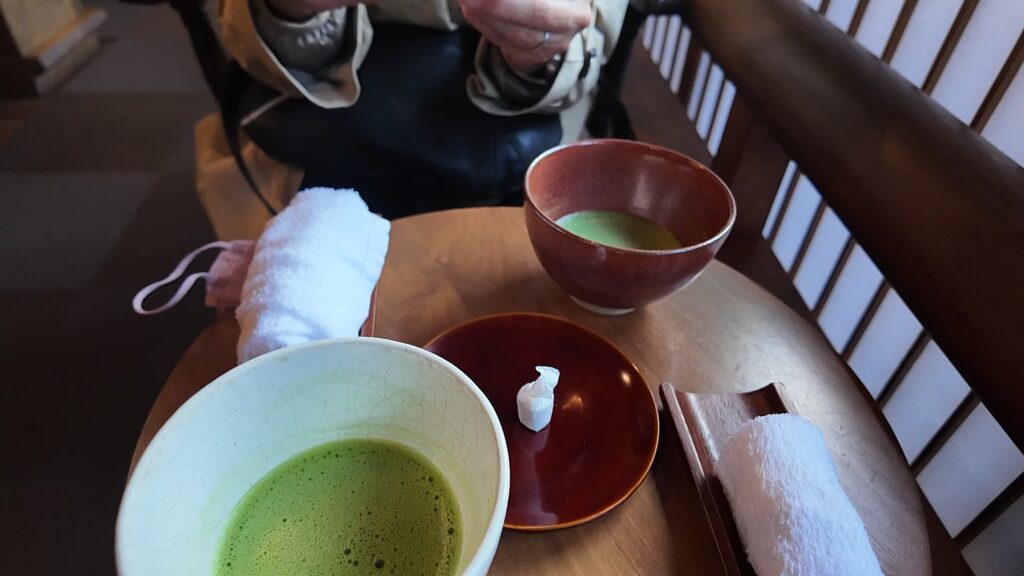 ウエルカムサービスで落雁と抹茶が提供されます。