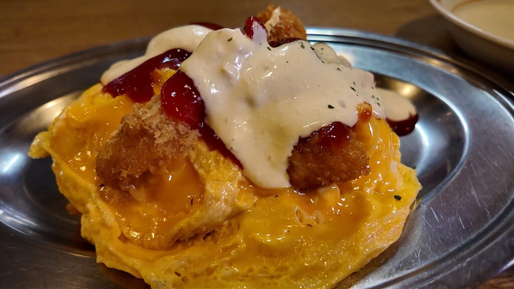 一見するとオムライスの上にケチャップがかかった洋食で普通のように見えますが食べてみるとめちゃ美味しかったです。