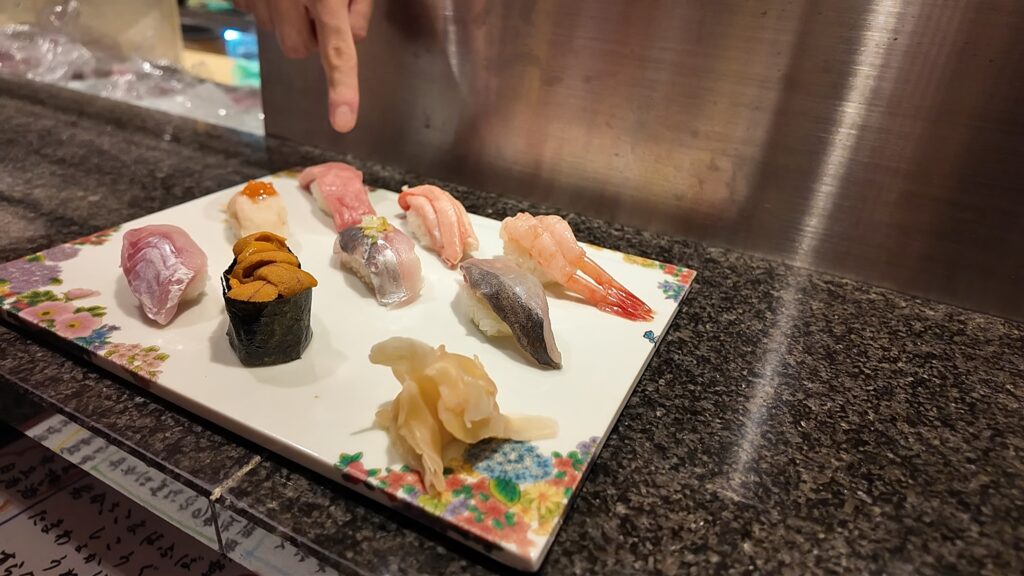 それと金沢まいもん握り。上握り10貫、大名穴子、のどぐろ手巻き ¥5800