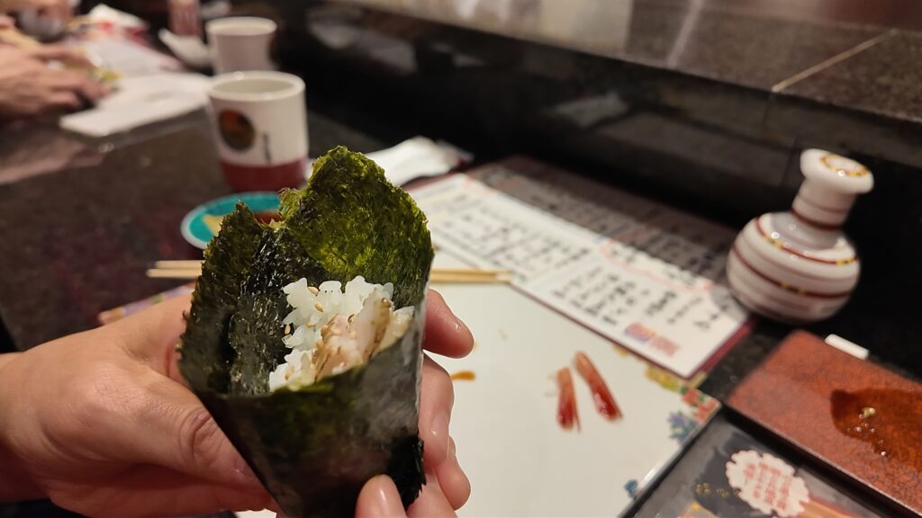 のどぐろ手巻きは脂の乗った美味しいのどぐろが入っています。