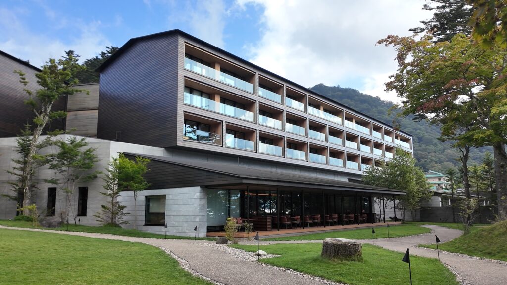 マリオット会員であれば予約で日光駅からホテルまで無料送迎バスが発着しています。公共機関のバスを利用すると1人あたり2千円強かかるのでお得です。