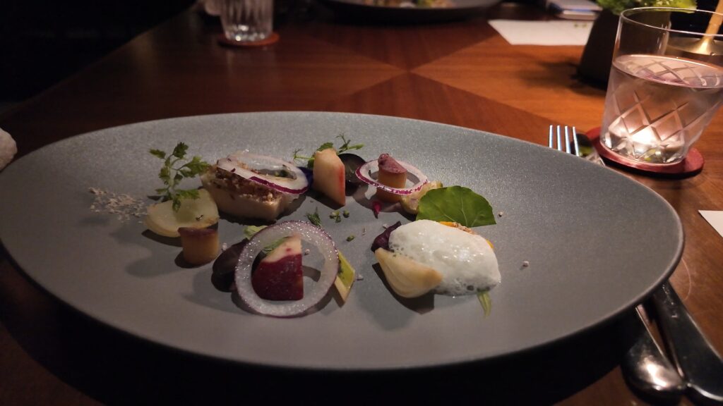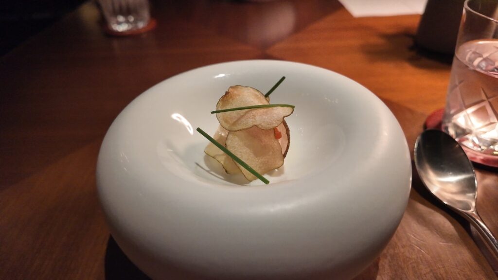 アミューズは「頂鱒 舟石芋 塩レモン」