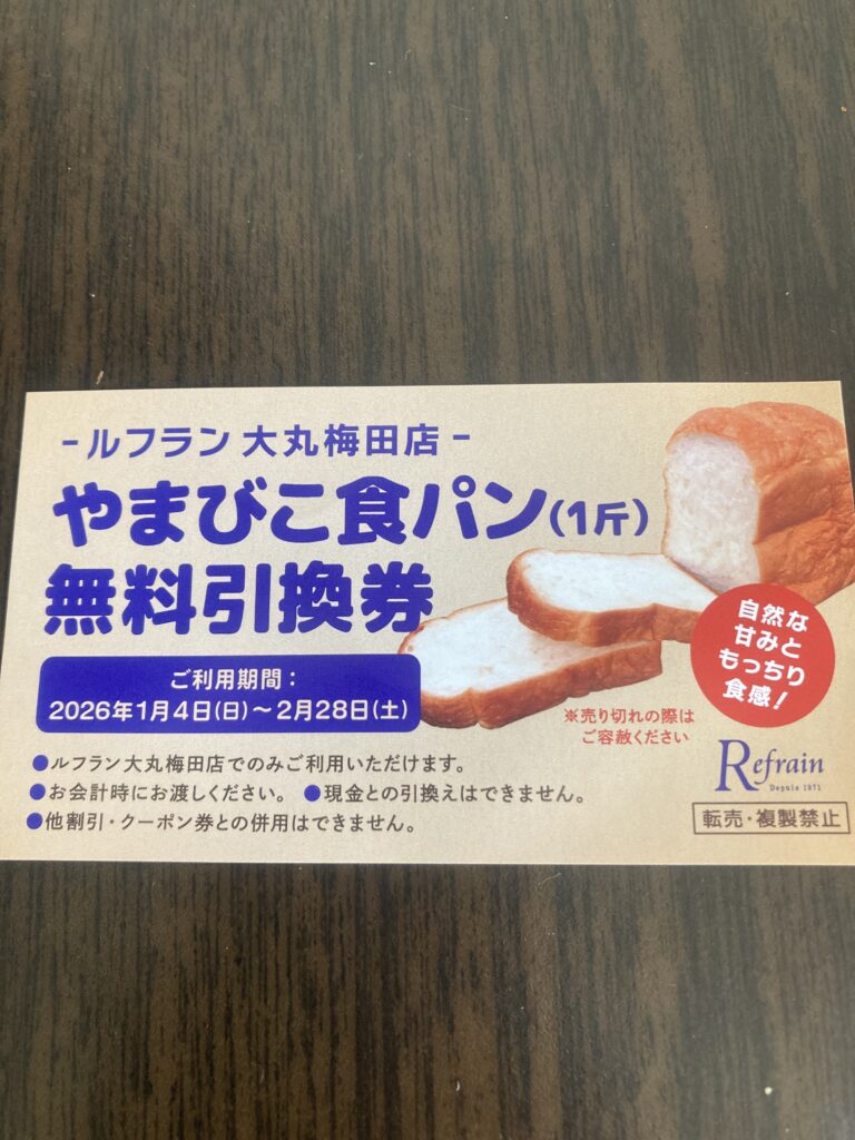 さらにやまびこ食パン1斤無料引換券まで付いていました。